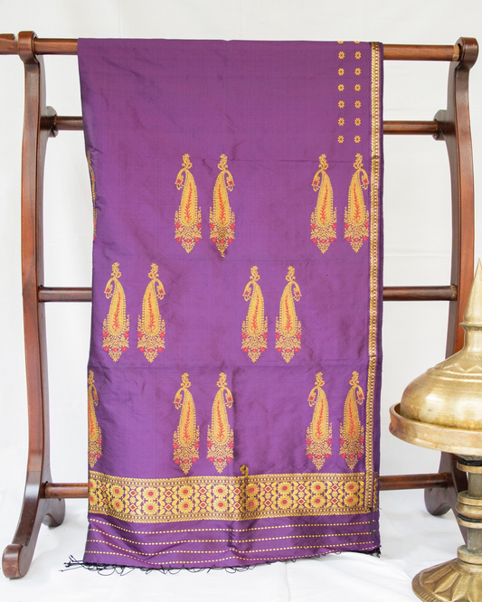 Phuleshwari Purple-Gold Paat Silk Mekhela Sador