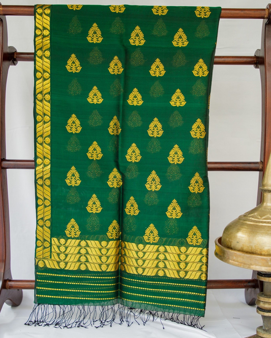 Ahom Bottle Green-Gold Kesa Paat Silk Mekhela Sador