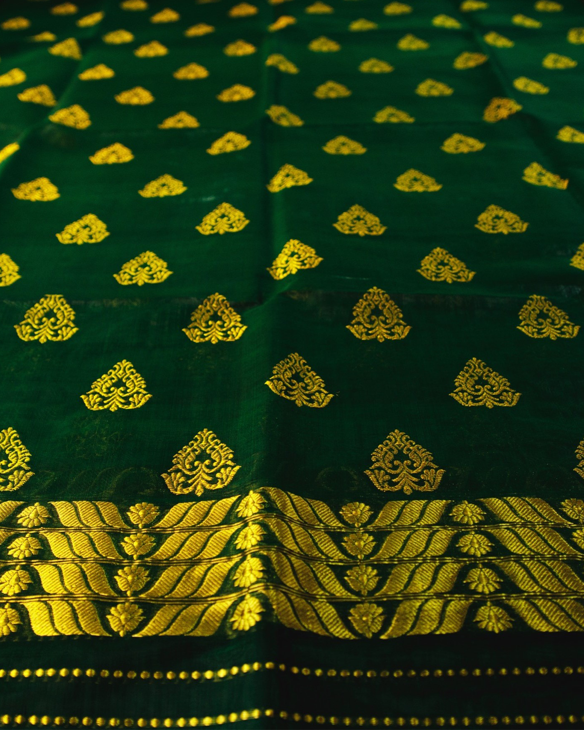 Ahom Bottle Green-Gold Kesa Paat Silk Mekhela Sador