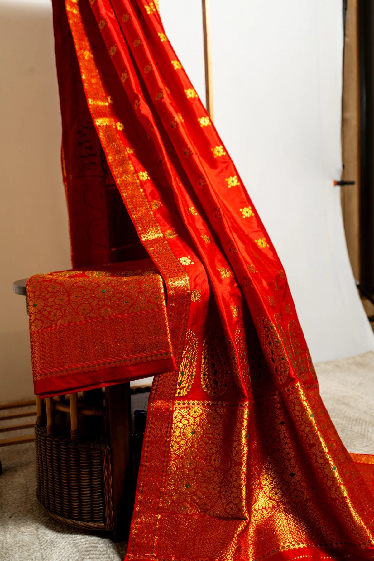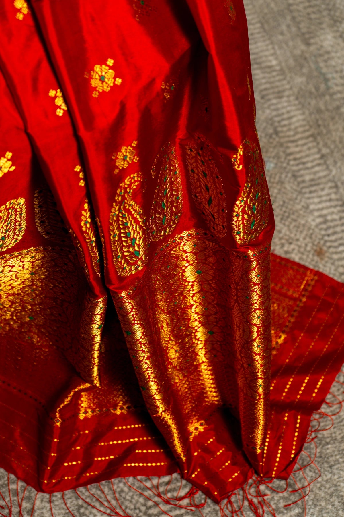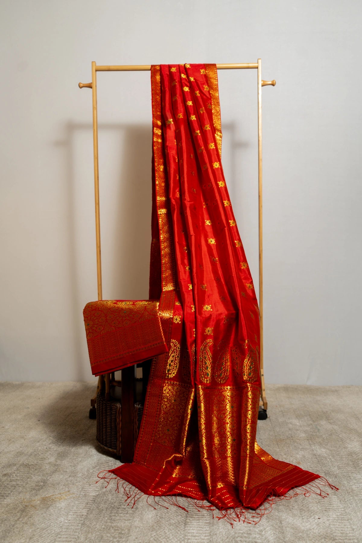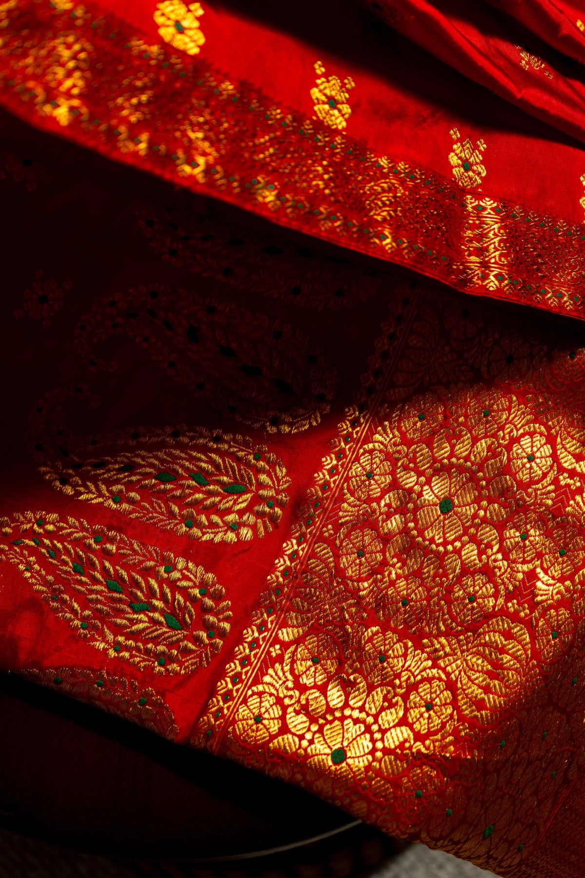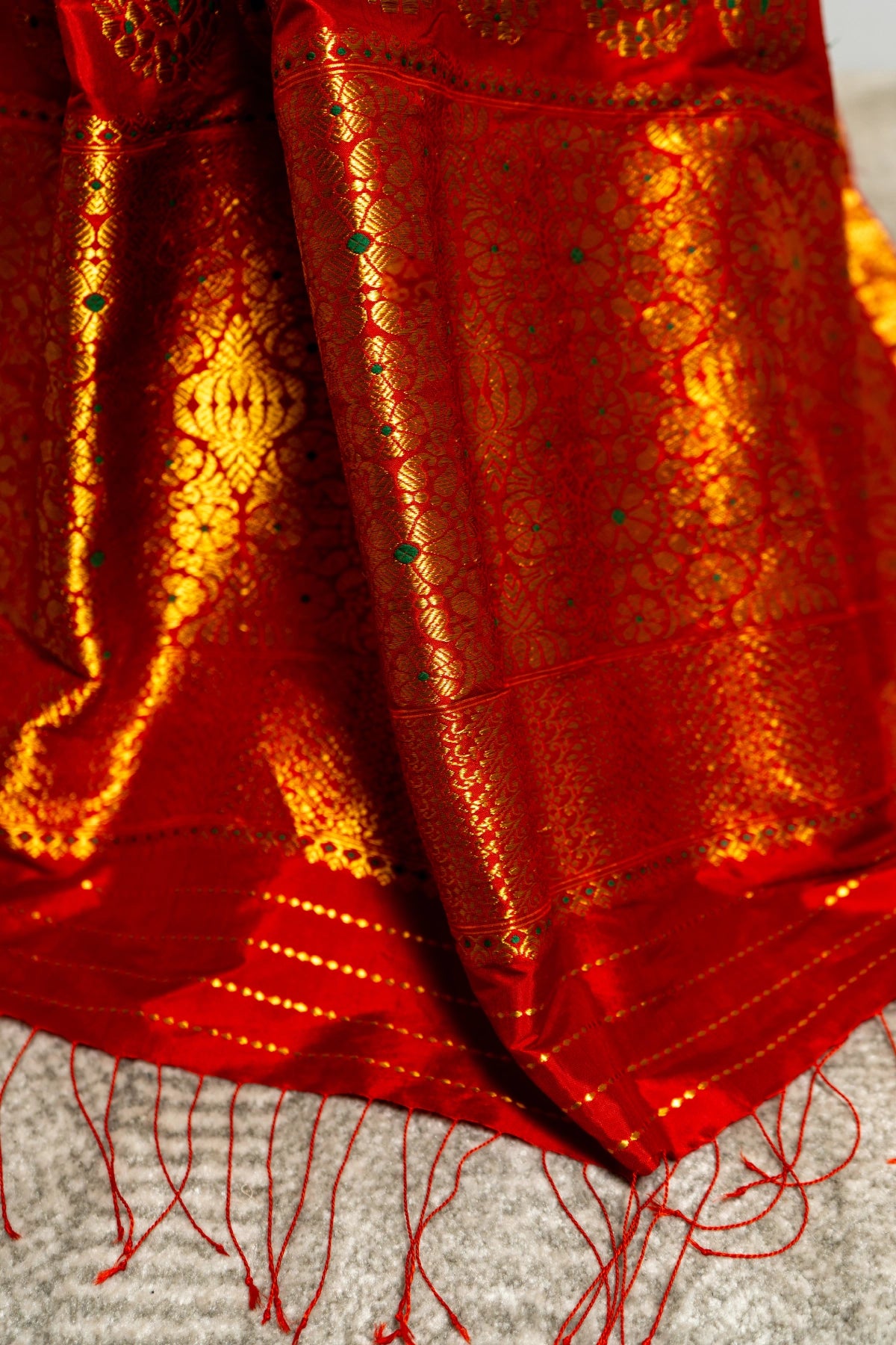 Woven by Xun, Altan is perfect for weddings, pujas, or when only timeless red will do.