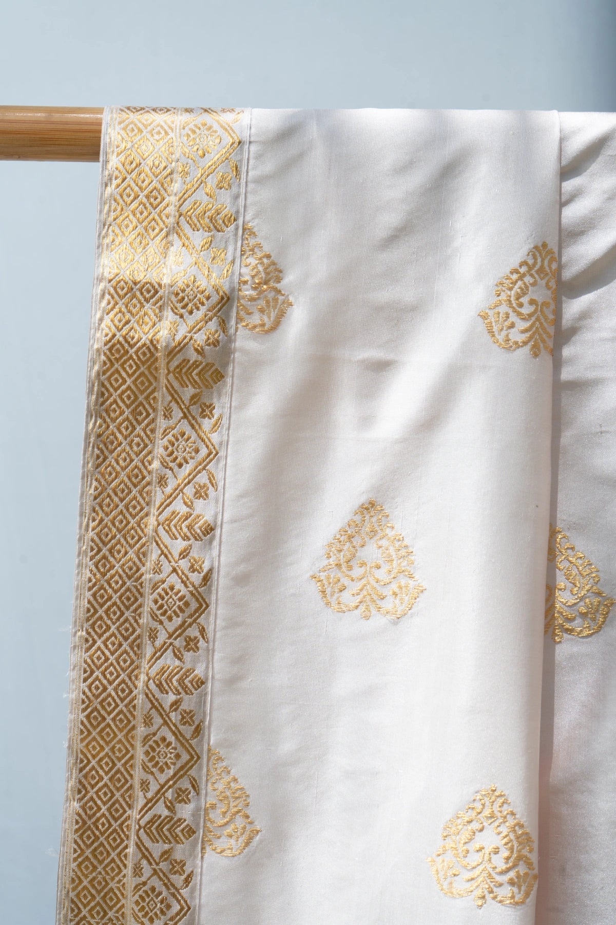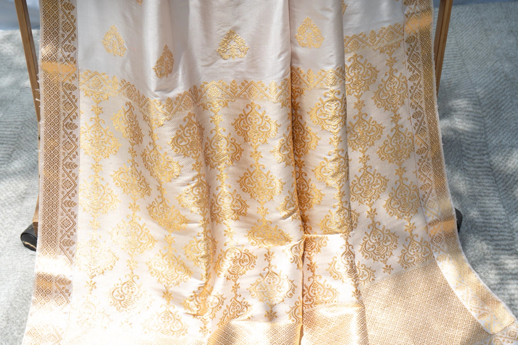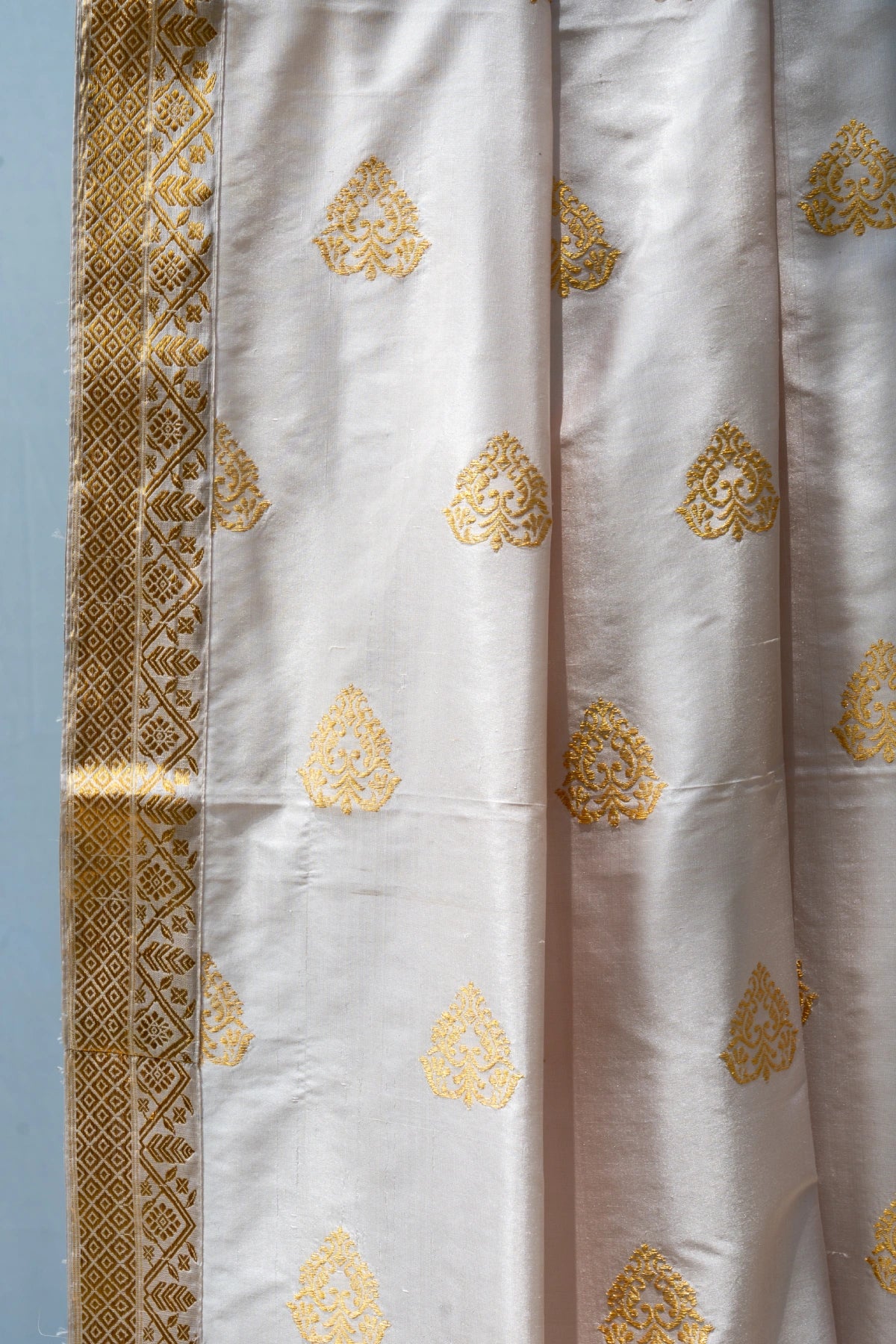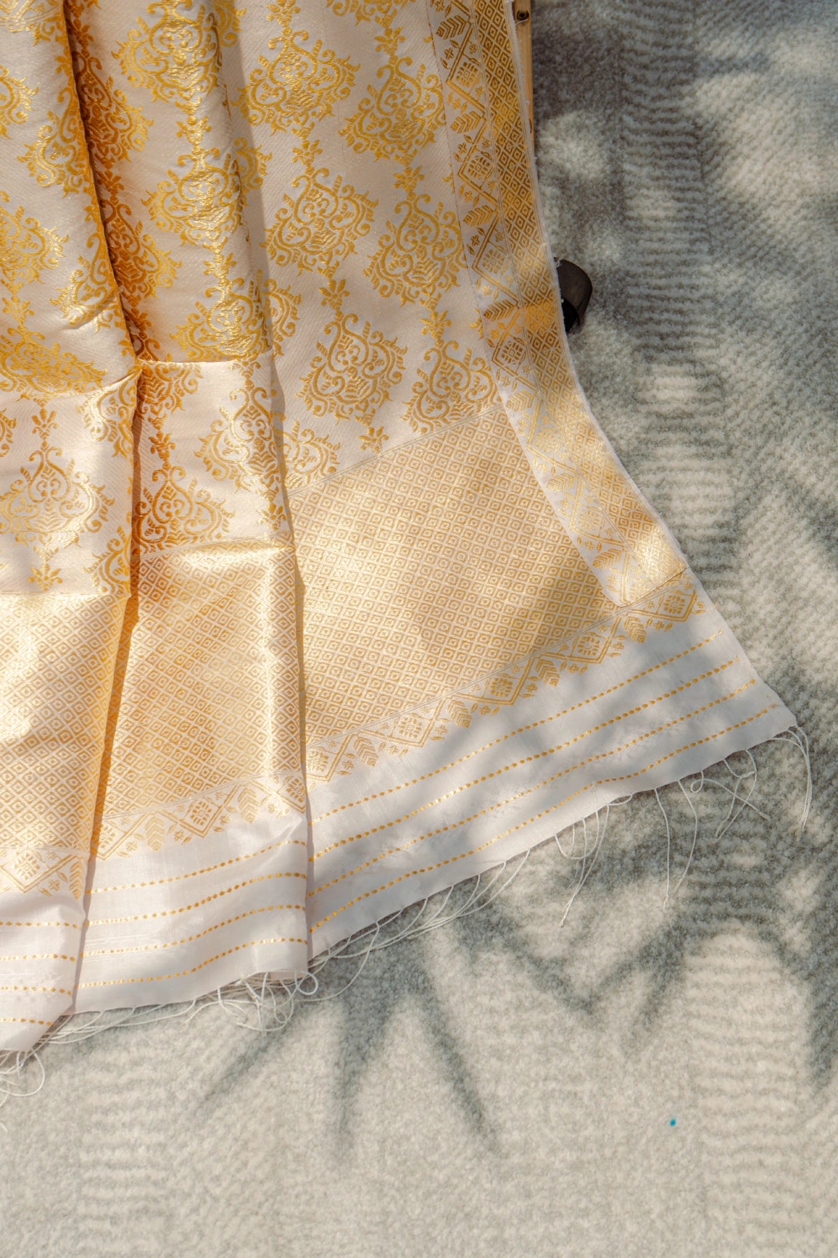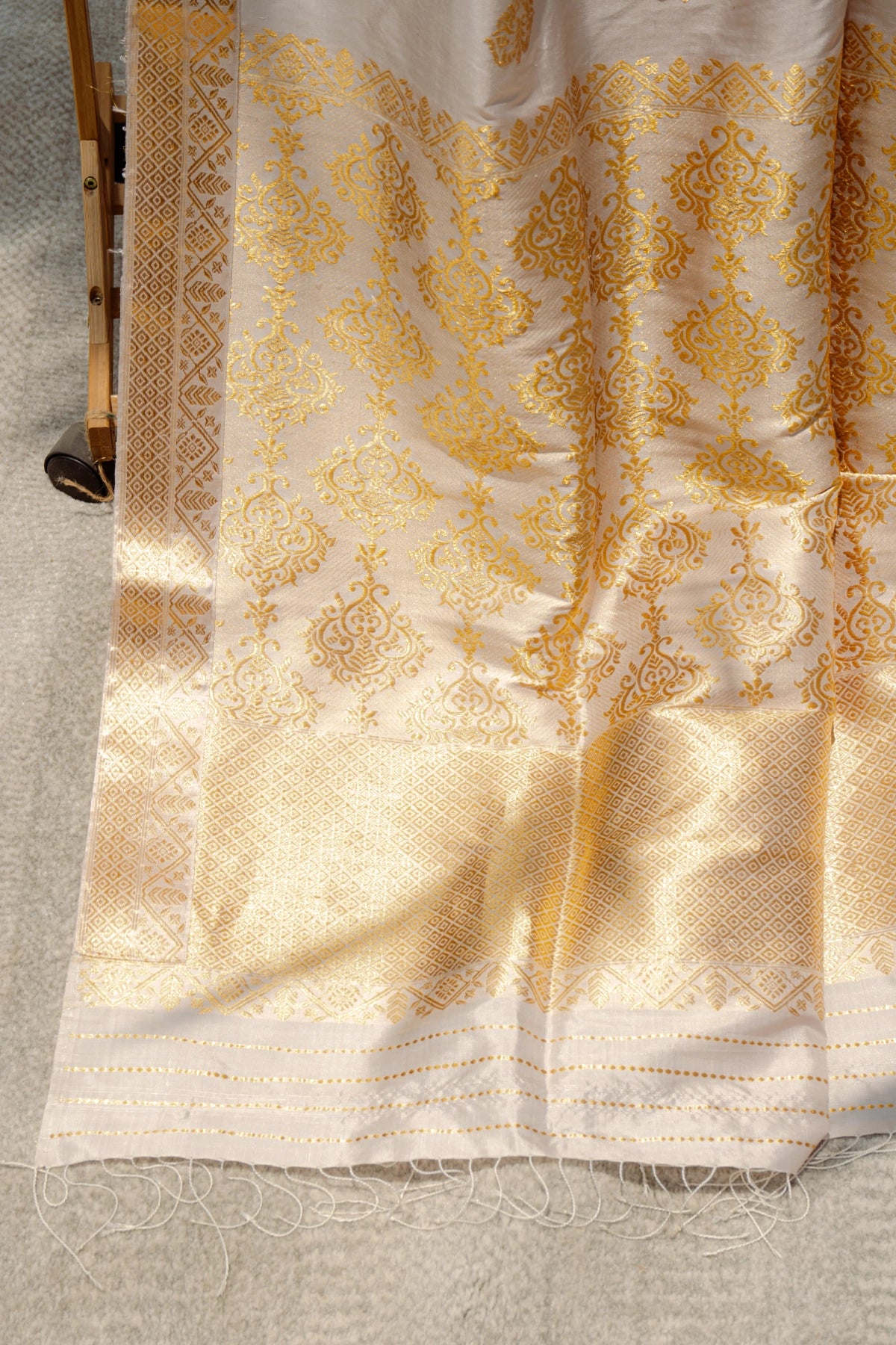 Don’t store the mekhela sador in a plastic cover as this will cause the gold embroidery to turn black. |