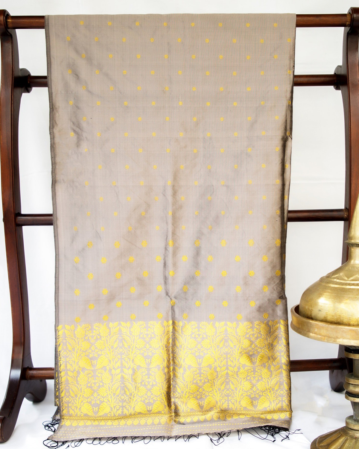 Anantha Greyish Brown-Gold Paat Silk Mekhela Sador
