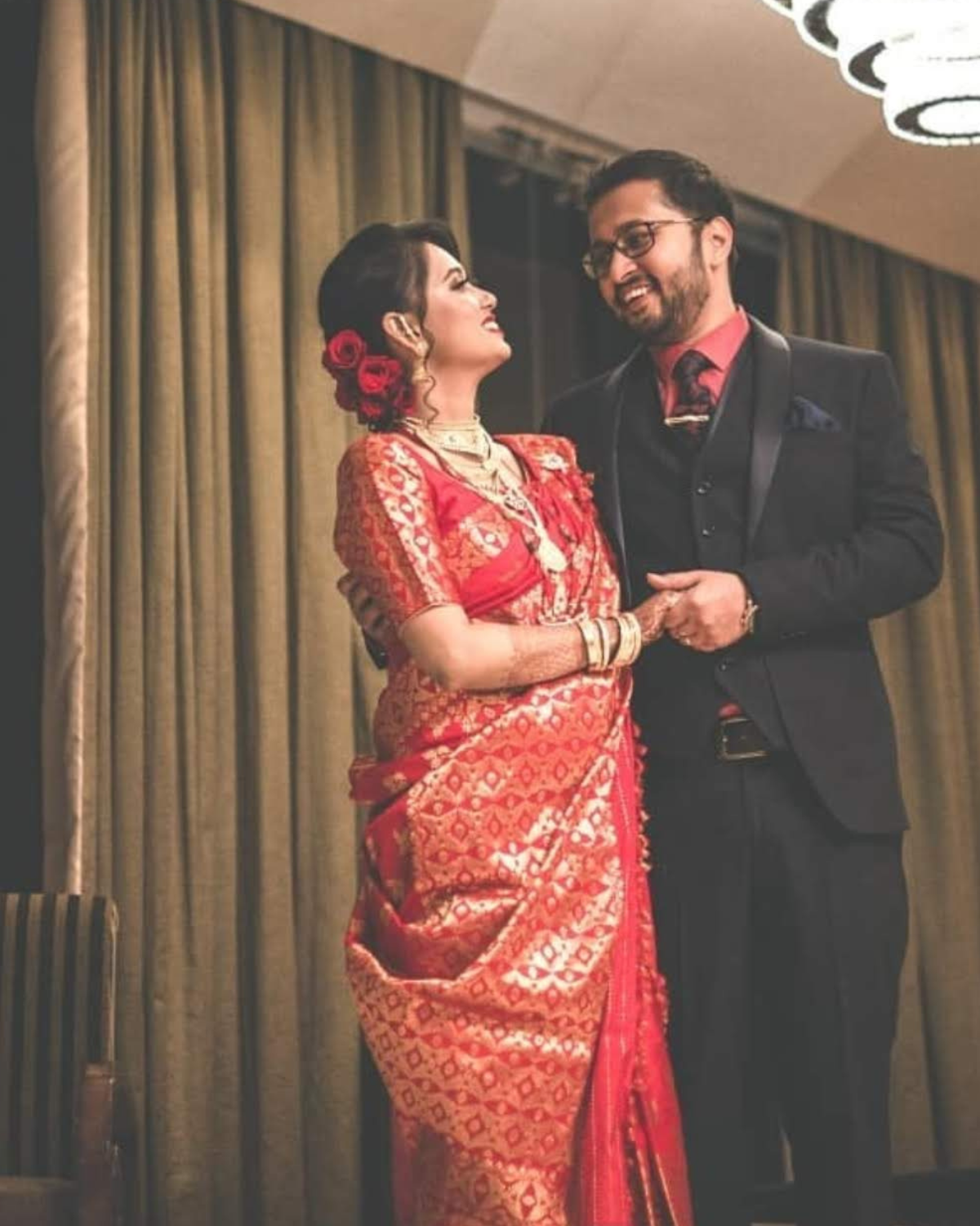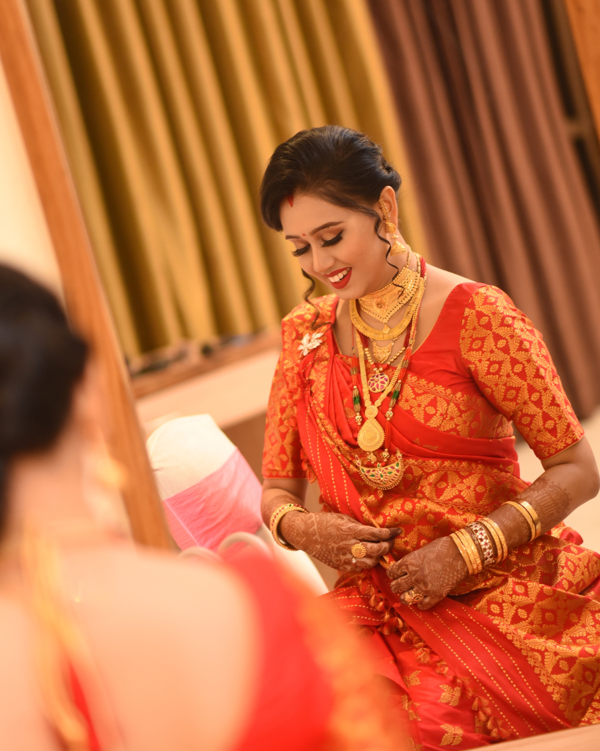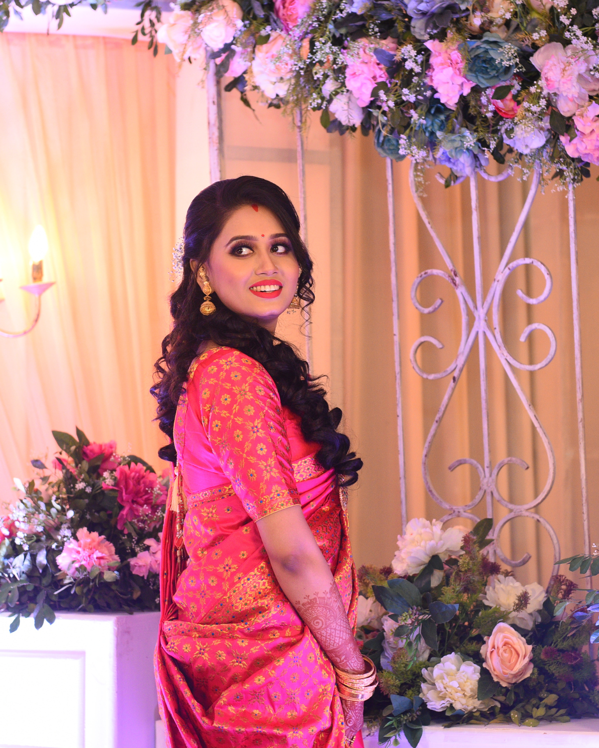 Ankita Reception Glow Pinkish Red-Gold Paat Silk Mekhela Sador