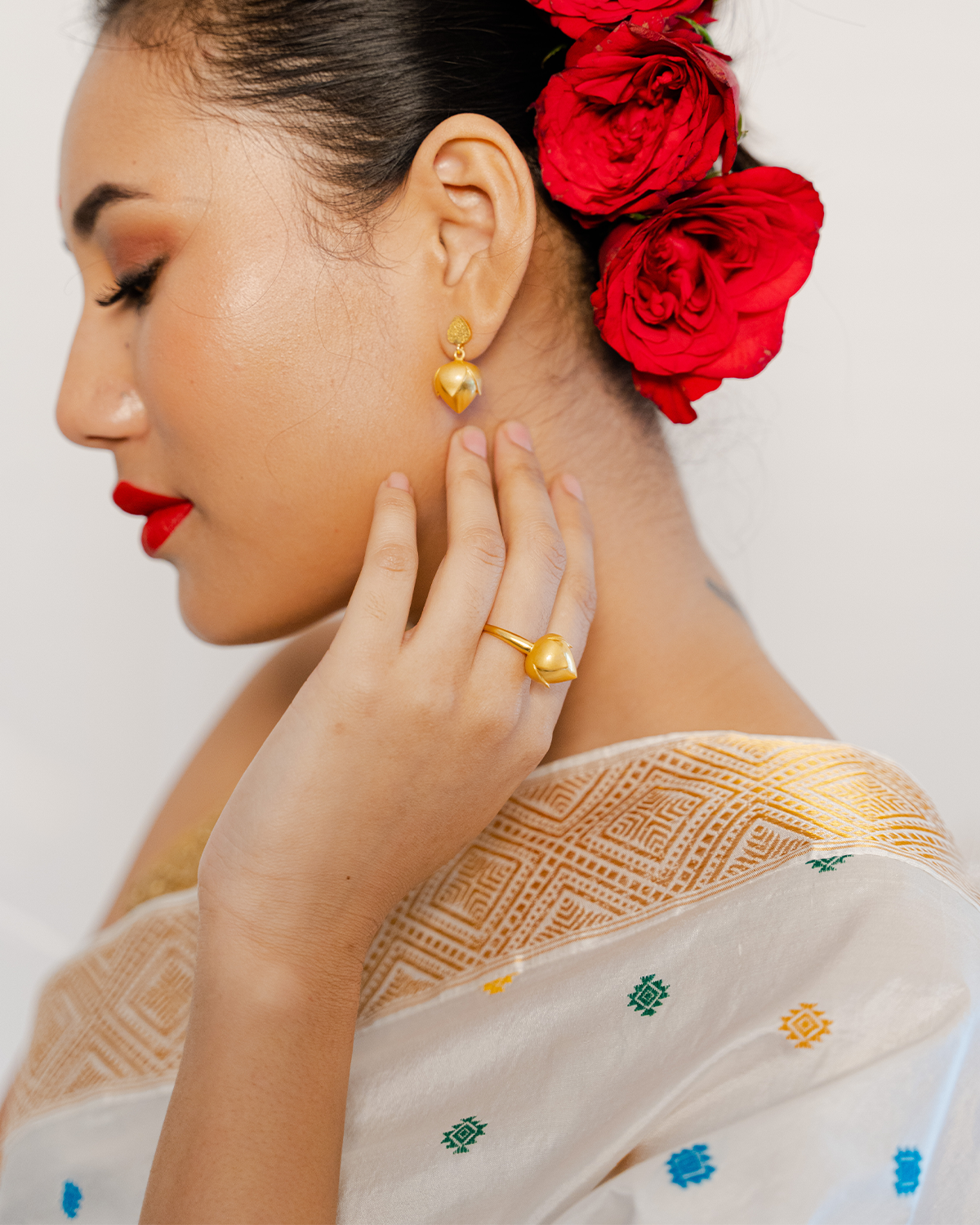 | Don’t store the mekhela sador in a plastic cover as this will cause the gold embroidery to turn black. |