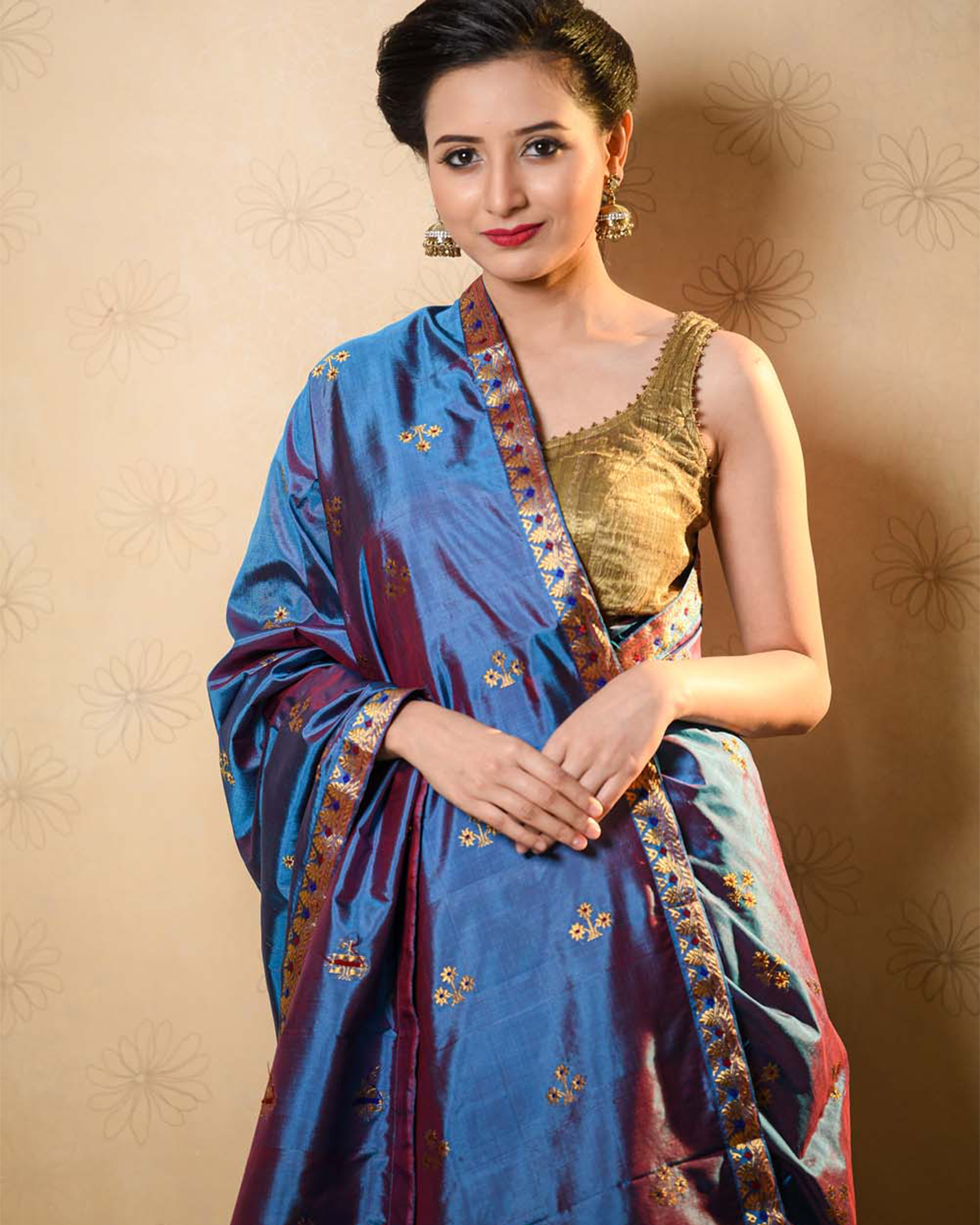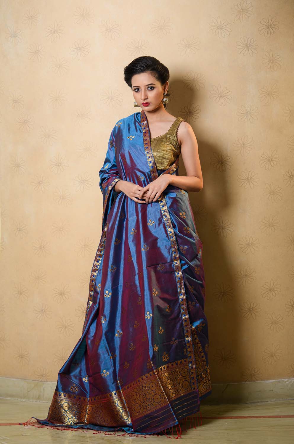 | Don’t store the mekhela sador in a plastic cover as this will cause the gold embroidery to turn black. |