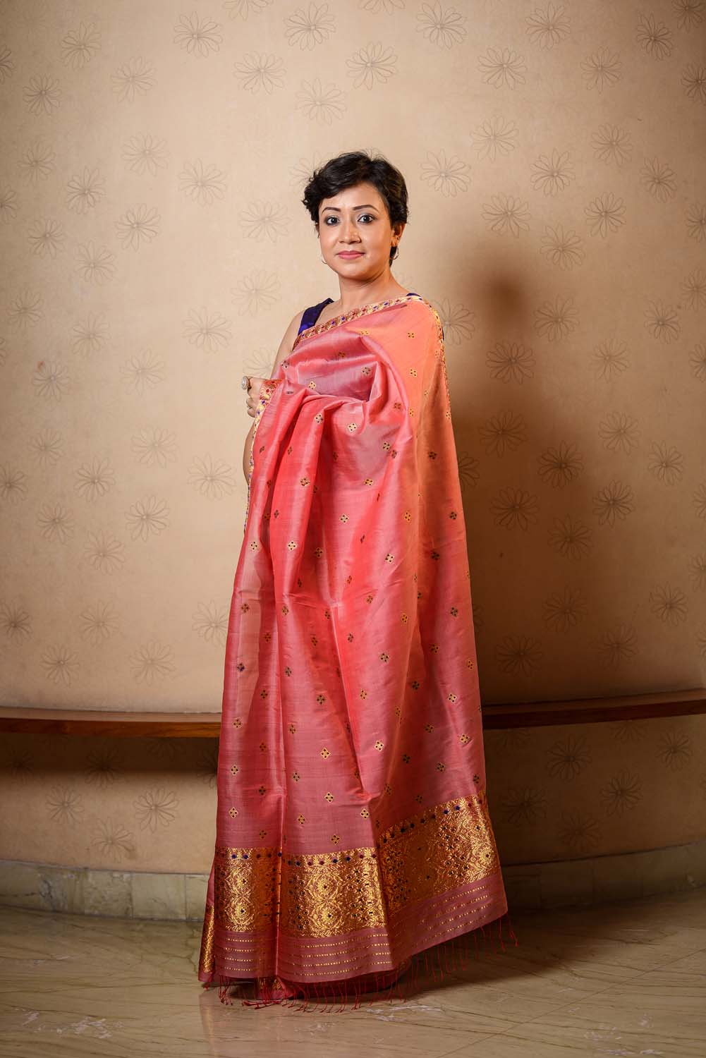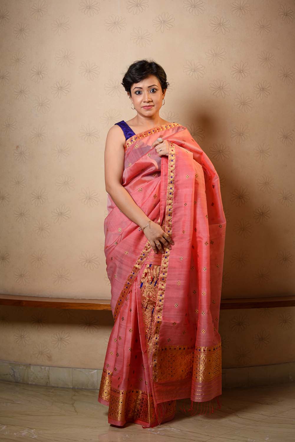 Disha Peach Kesa Paat Silk Mekhela Sador