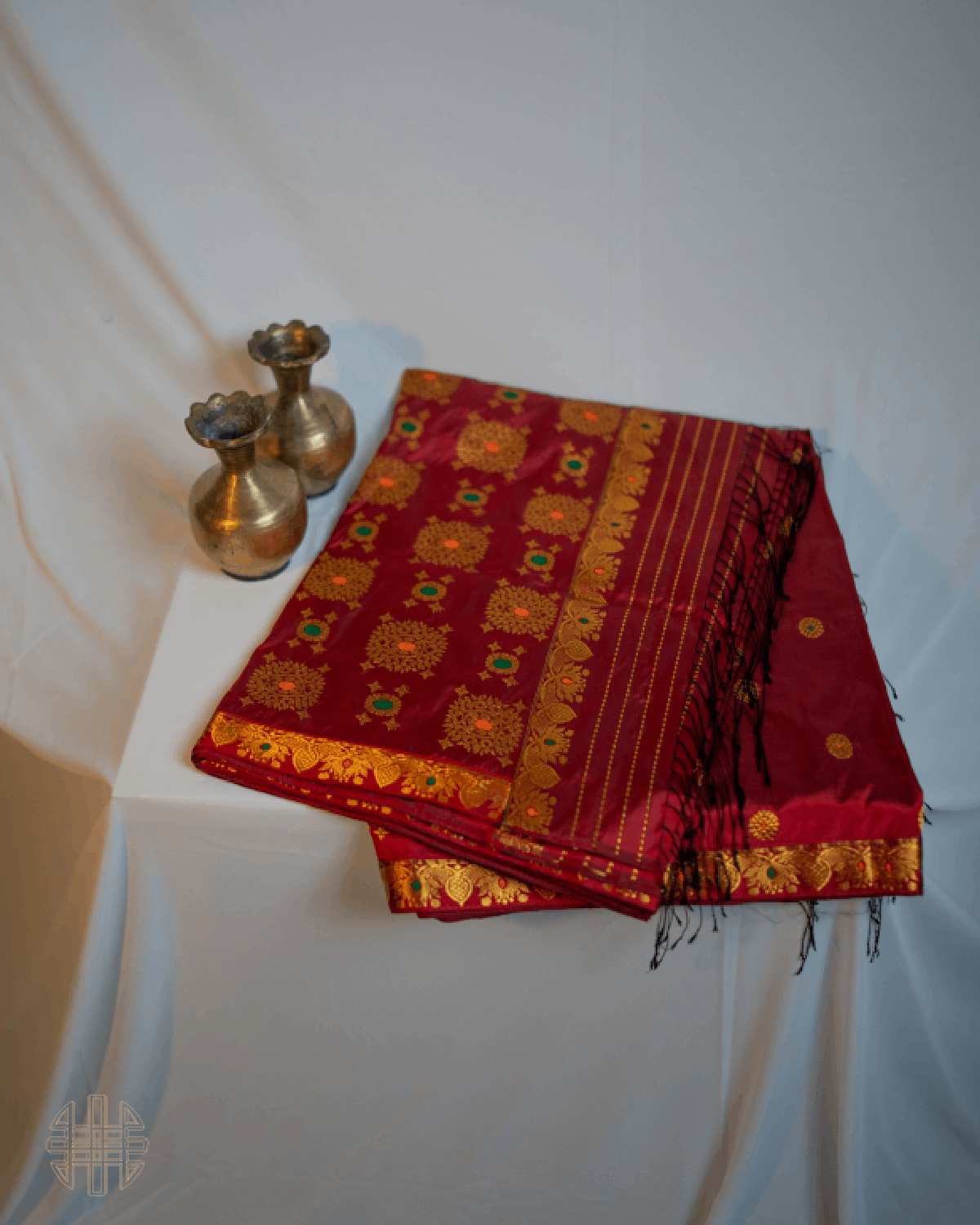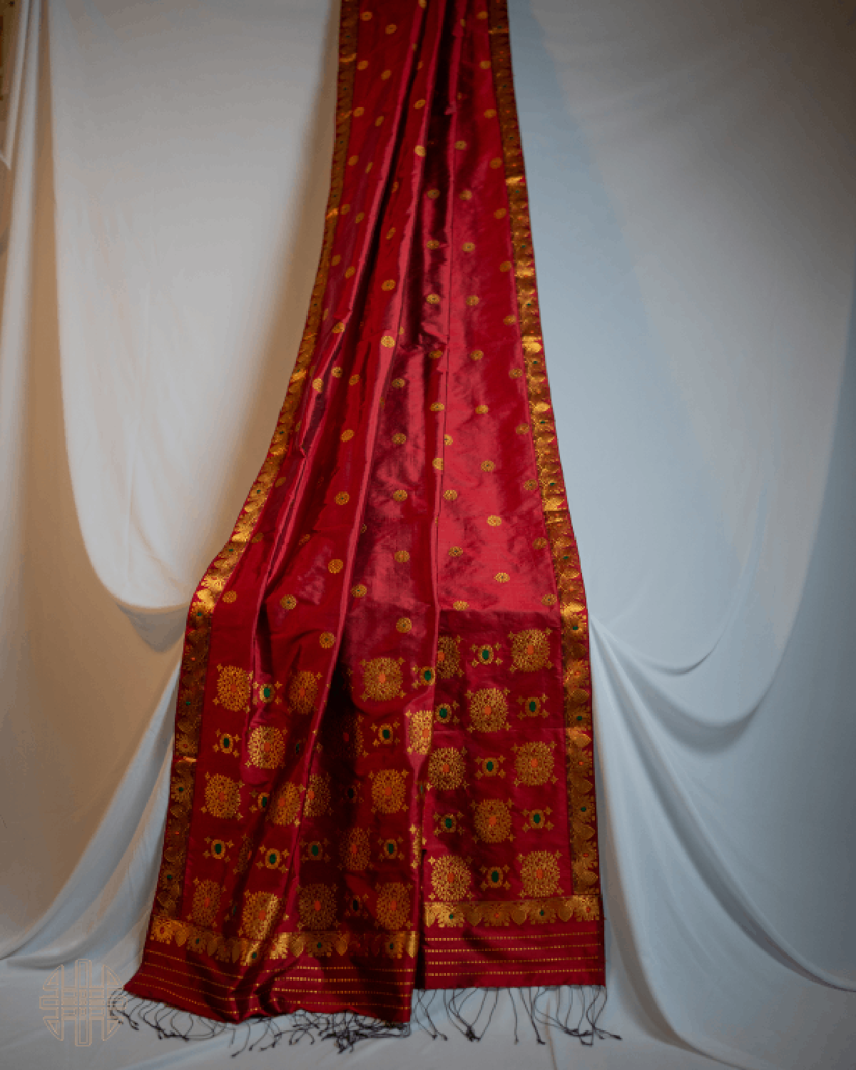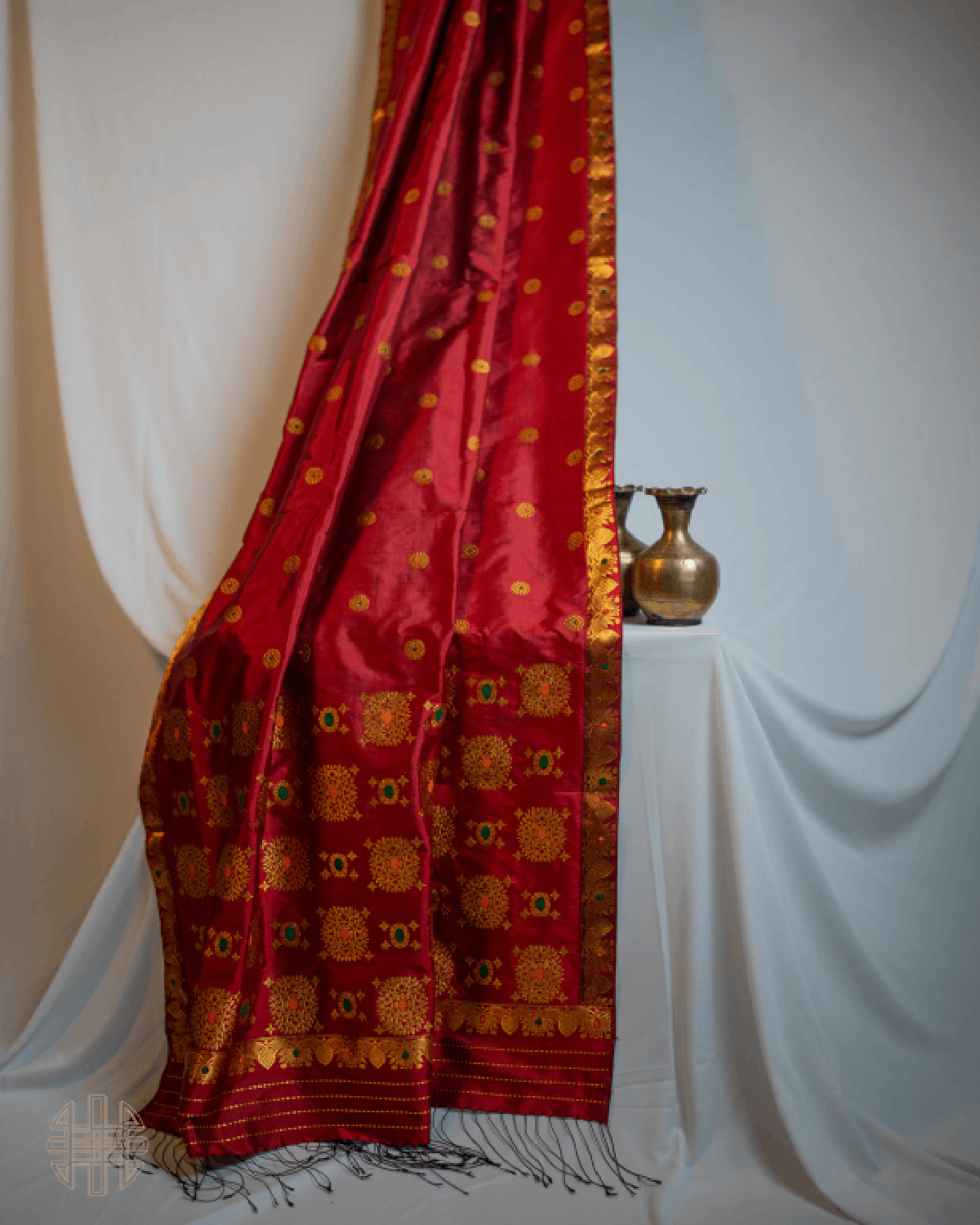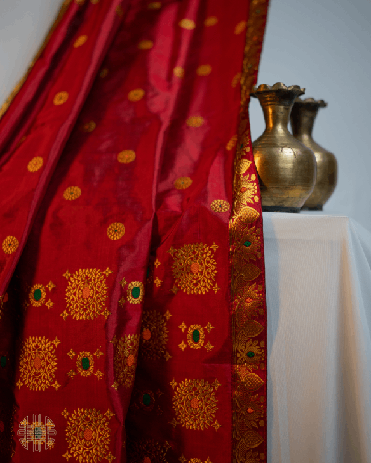 Think rich red silk, flecked with golden gul butas and bordered by lotus motifs, for that classic yet cool Assamese flair.