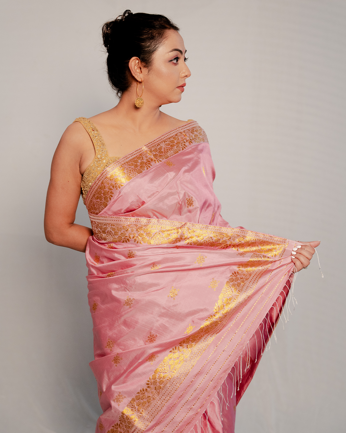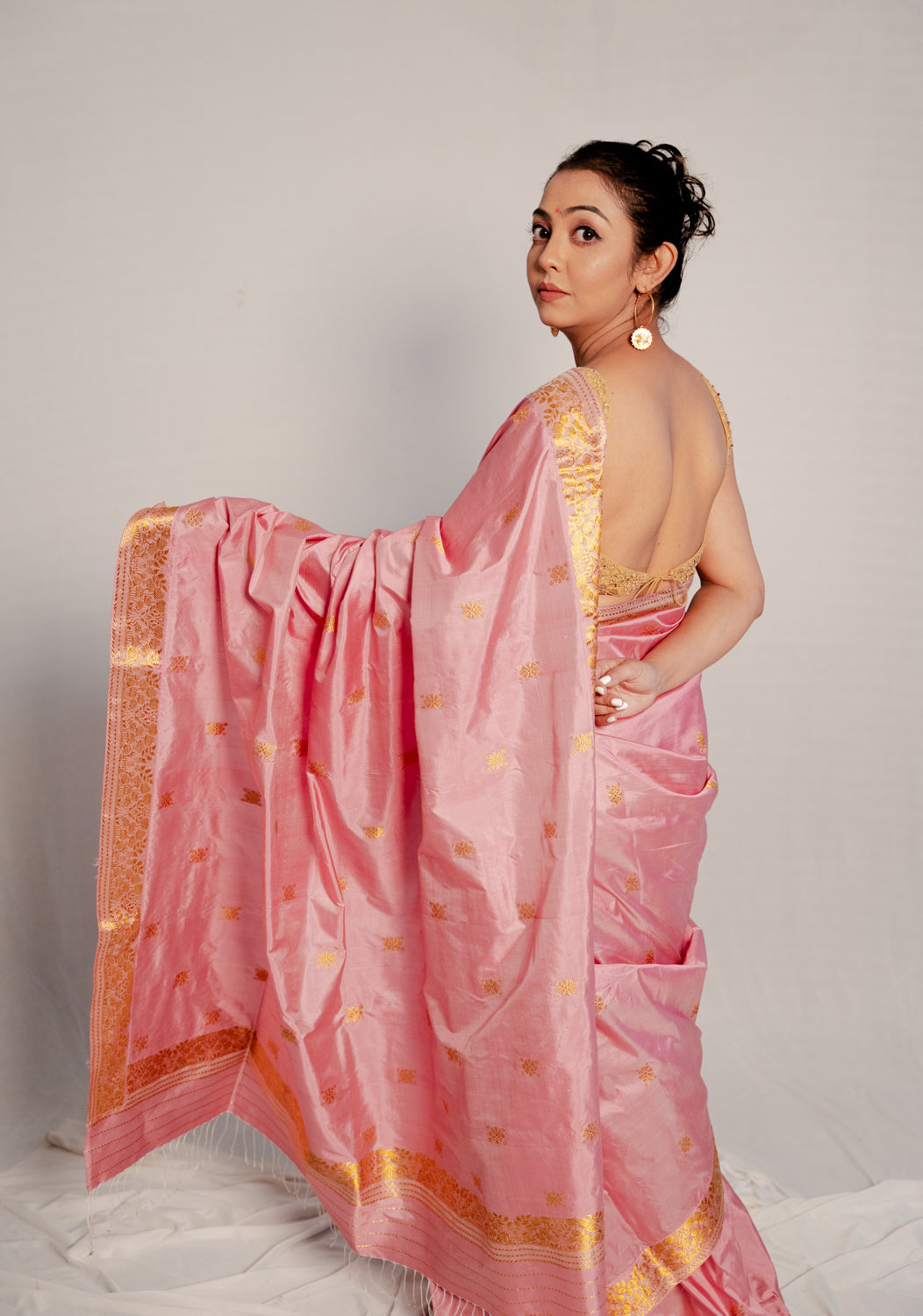 Hamsini Rose Pink-Gold Paat Silk Saree