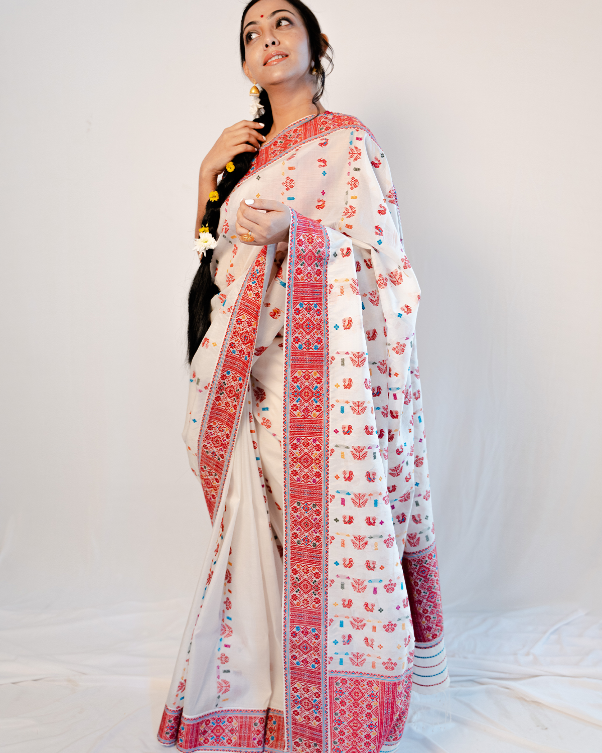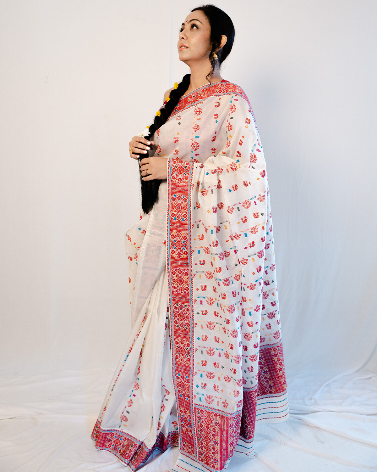 Presenting our authentic Assamese household cotton masterpiece that indeed makes for a perfectly comfortable yet sublime look.