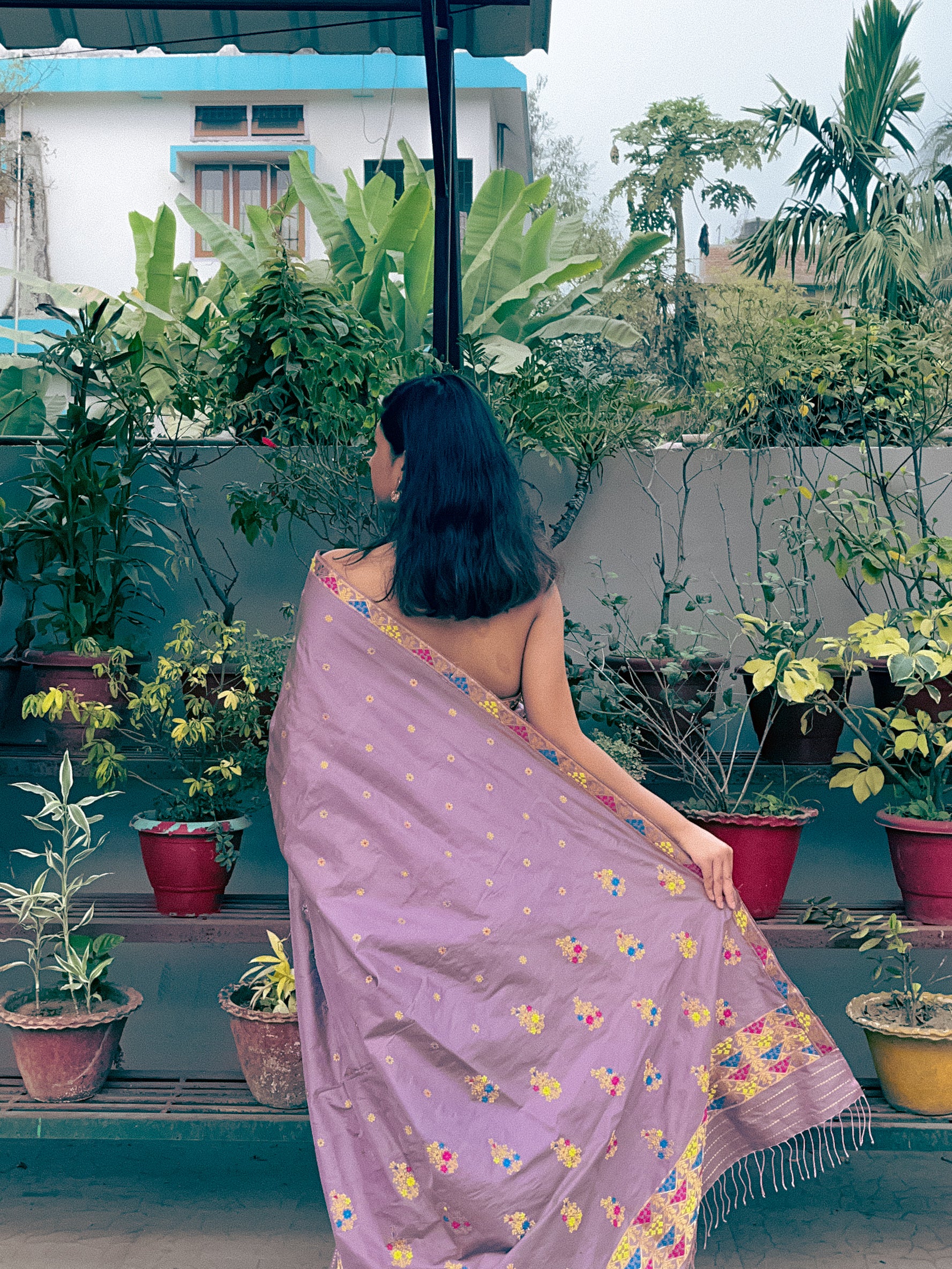 | Don’t store the mekhela sador in a plastic cover as this will cause the gold embroidery to turn black. |