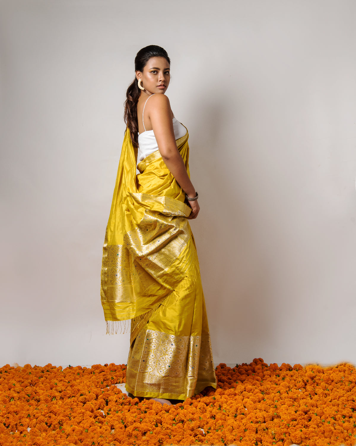 Kasturi Mustard Yellow Paat Silk Mekhela Sador