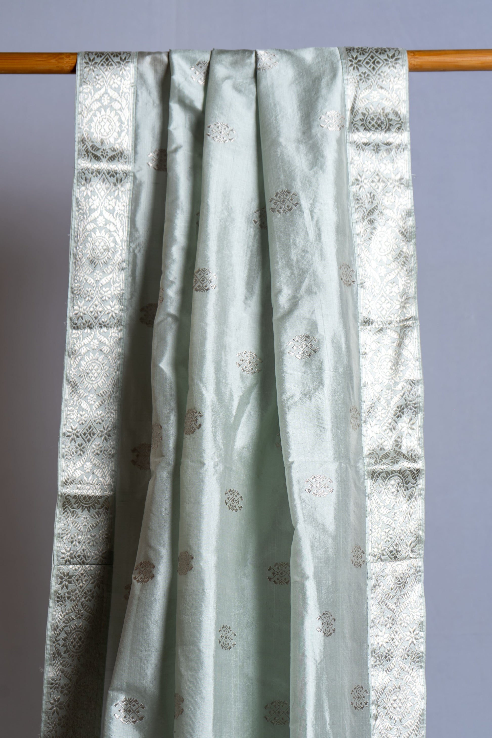 Lilen's pastel green paat silk is so pale, it’s like light. Luminous, and impossibly soft.