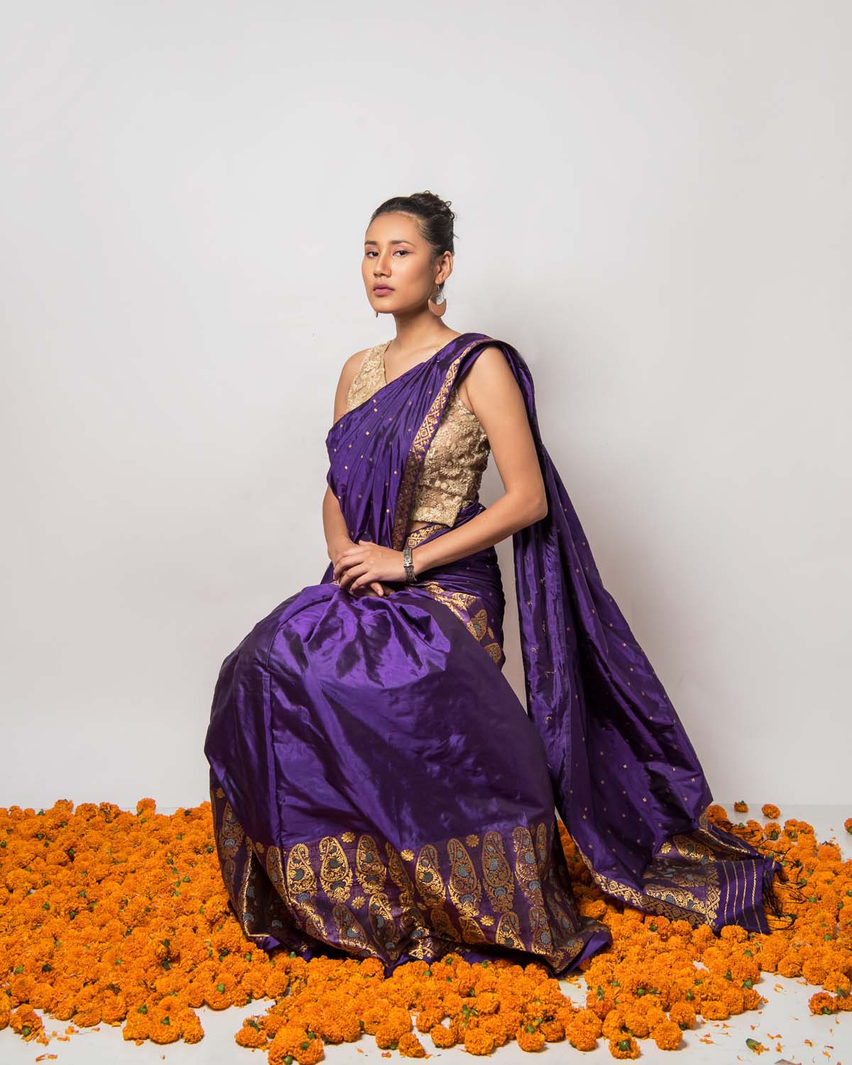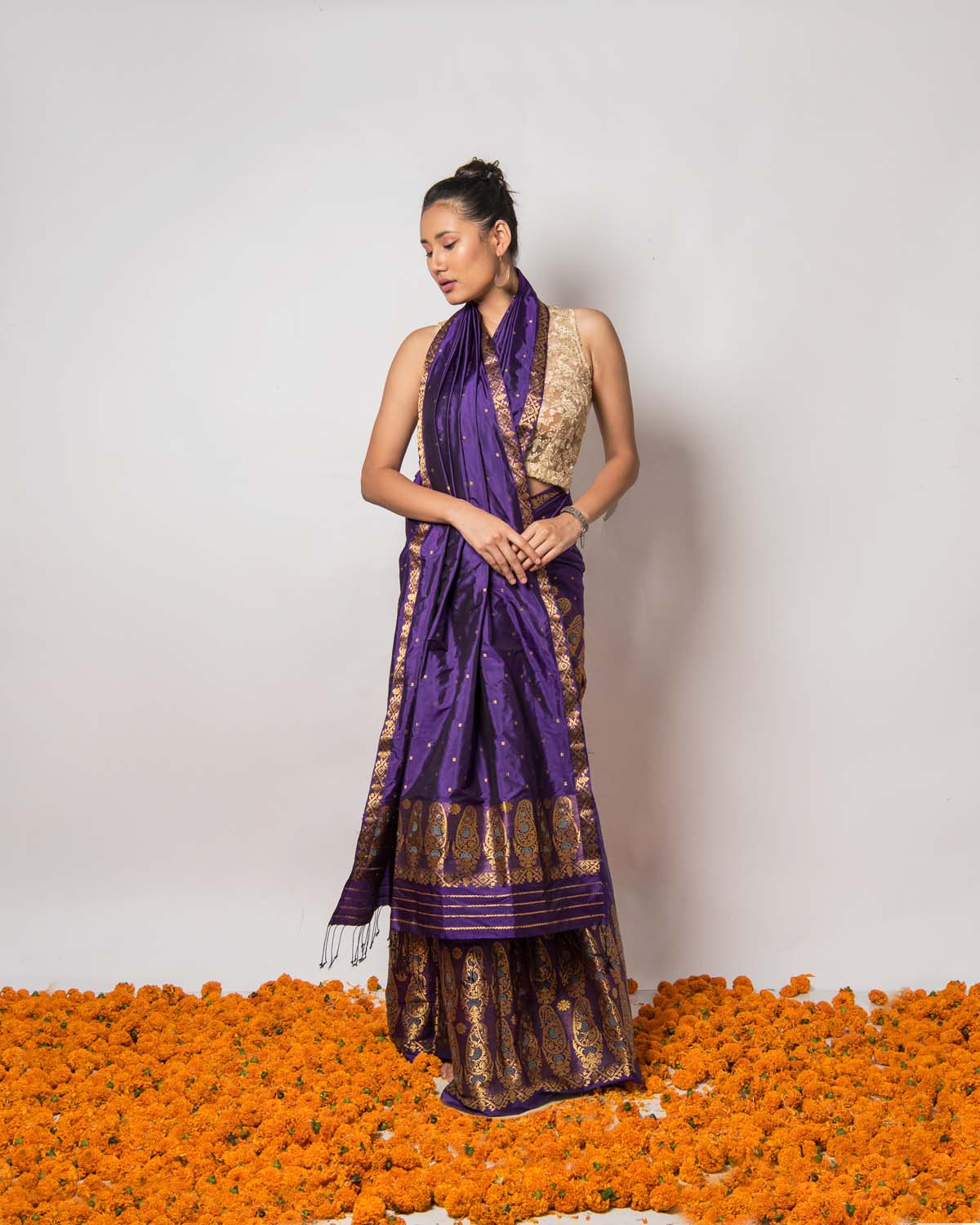| Don’t store the mekhela sador in a plastic cover as this will cause the gold embroidery to turn black. |