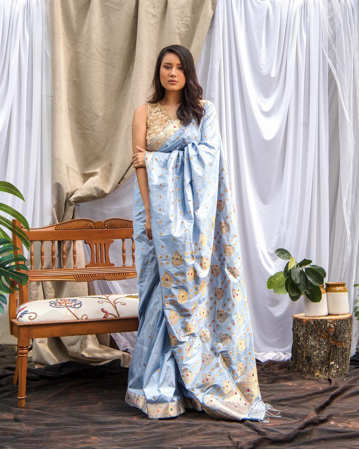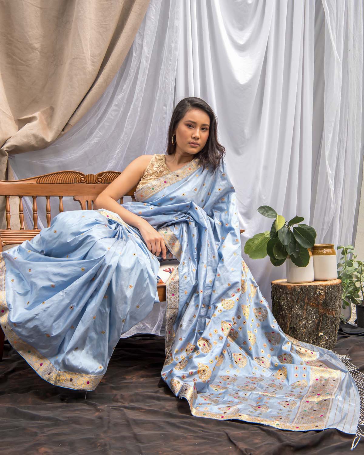 Signifying the royalty and magnanimity of the erstwhile kingdom, this style has been highly inspired by the Ahom dynasty. It’s a well balanced attire that goes with any commemoration and festivity.
