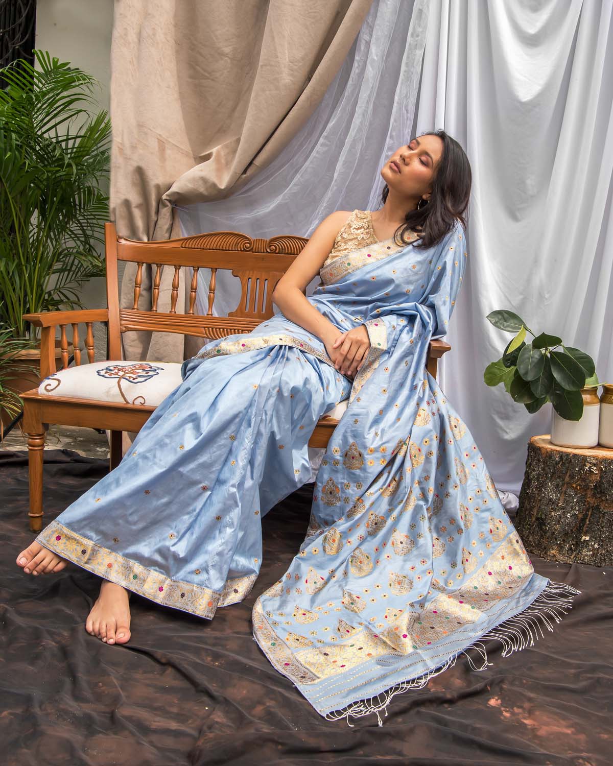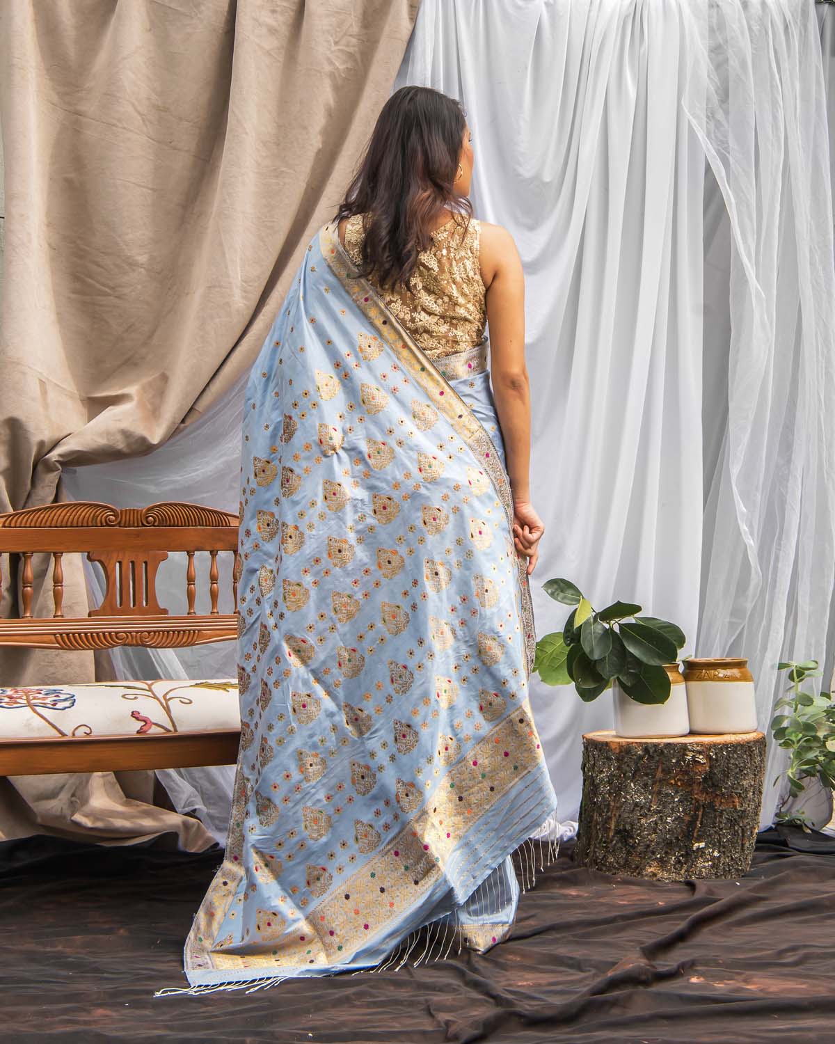 | Don’t store the mekhela sador in a plastic cover as this will cause the gold embroidery to turn black. |
