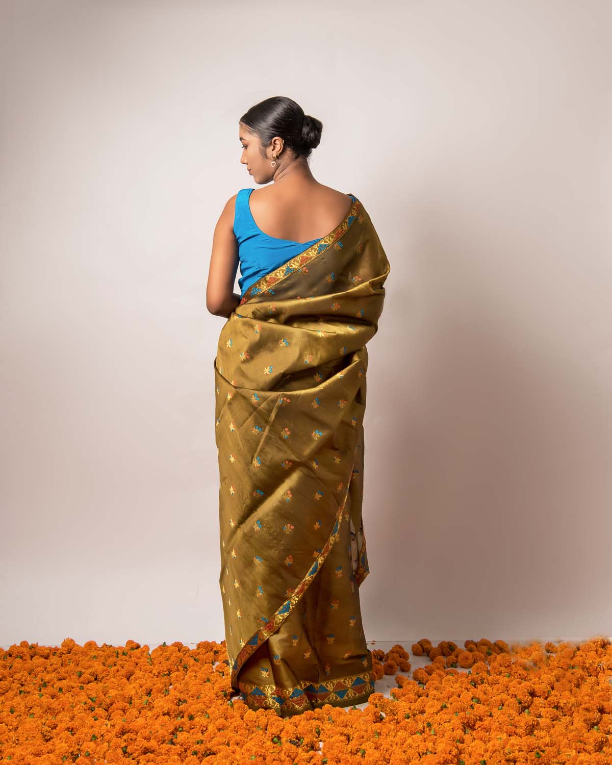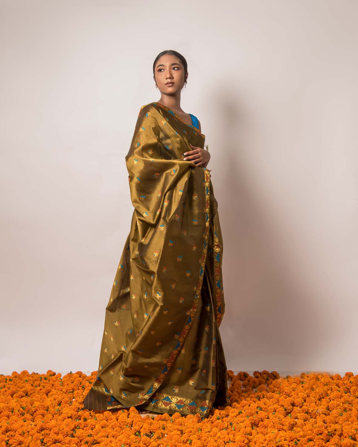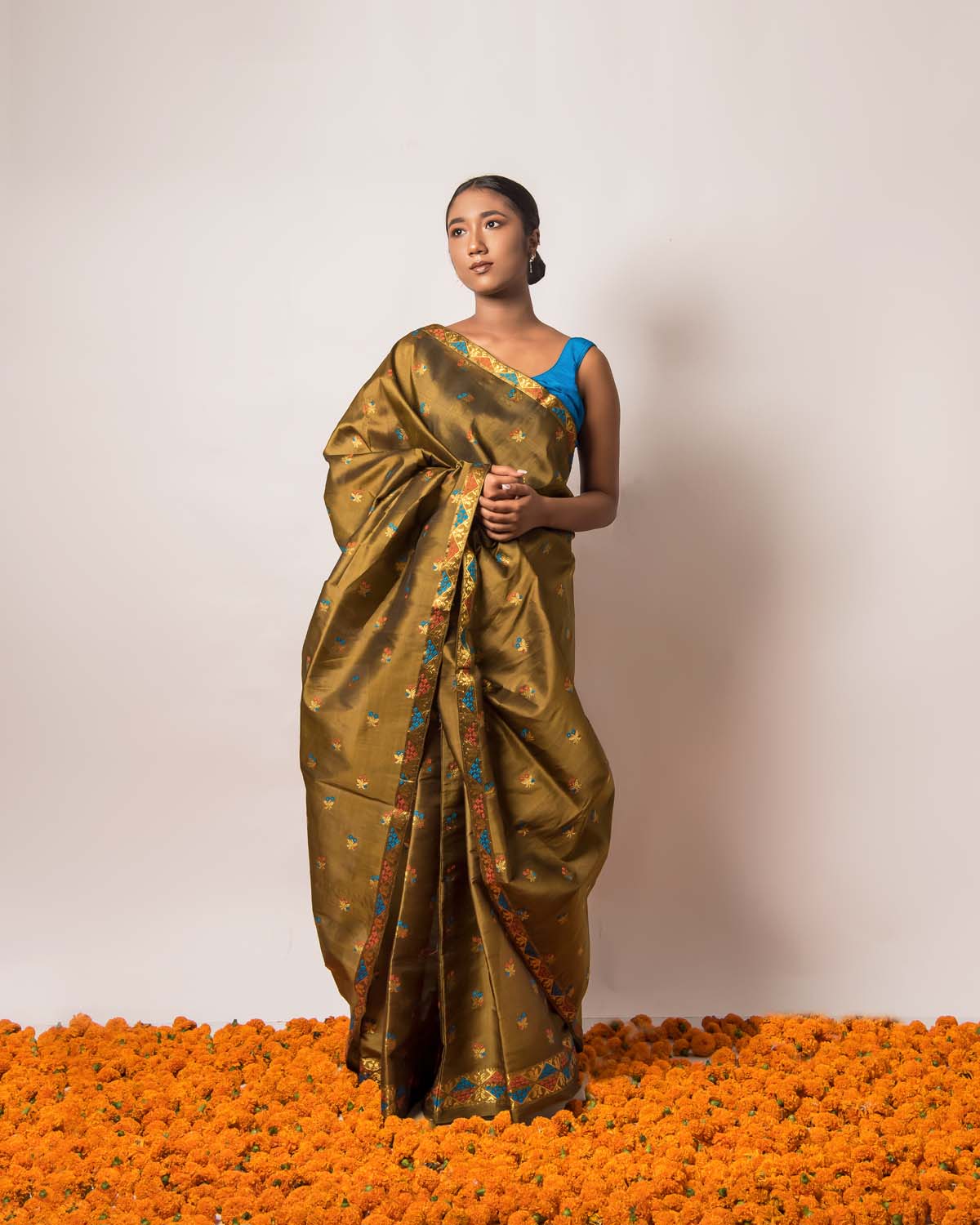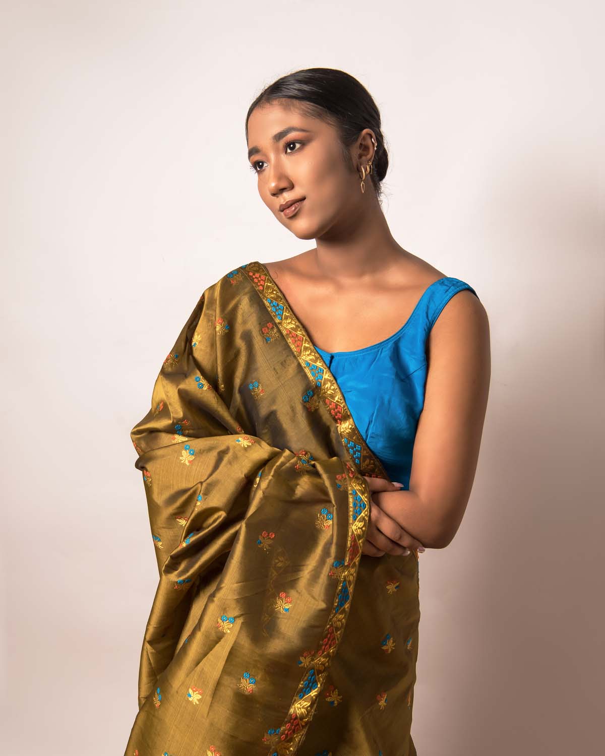 Complementing the Assamese beauty and it’s ever-green essence, Niyati olive green paat/mulberry silk mekhela sador unravels the exceptional craftsmanship of our hardworking weavers & artisans.