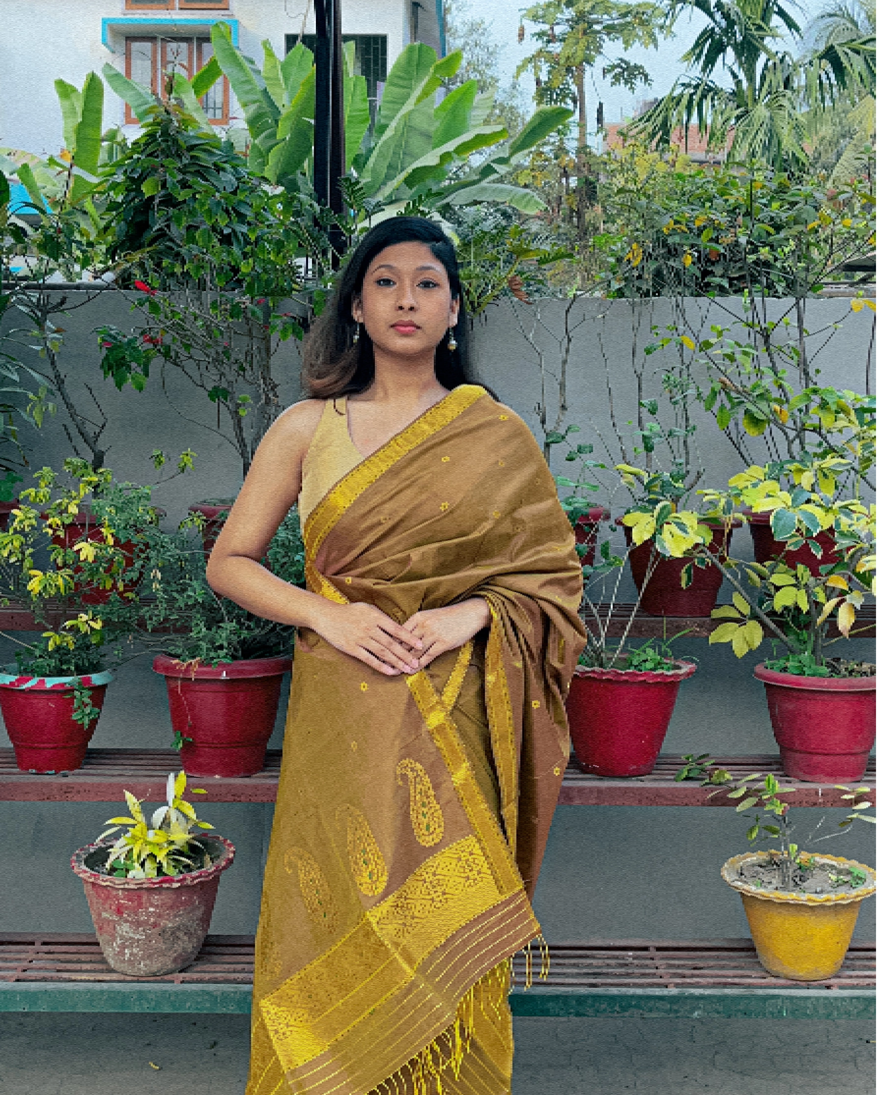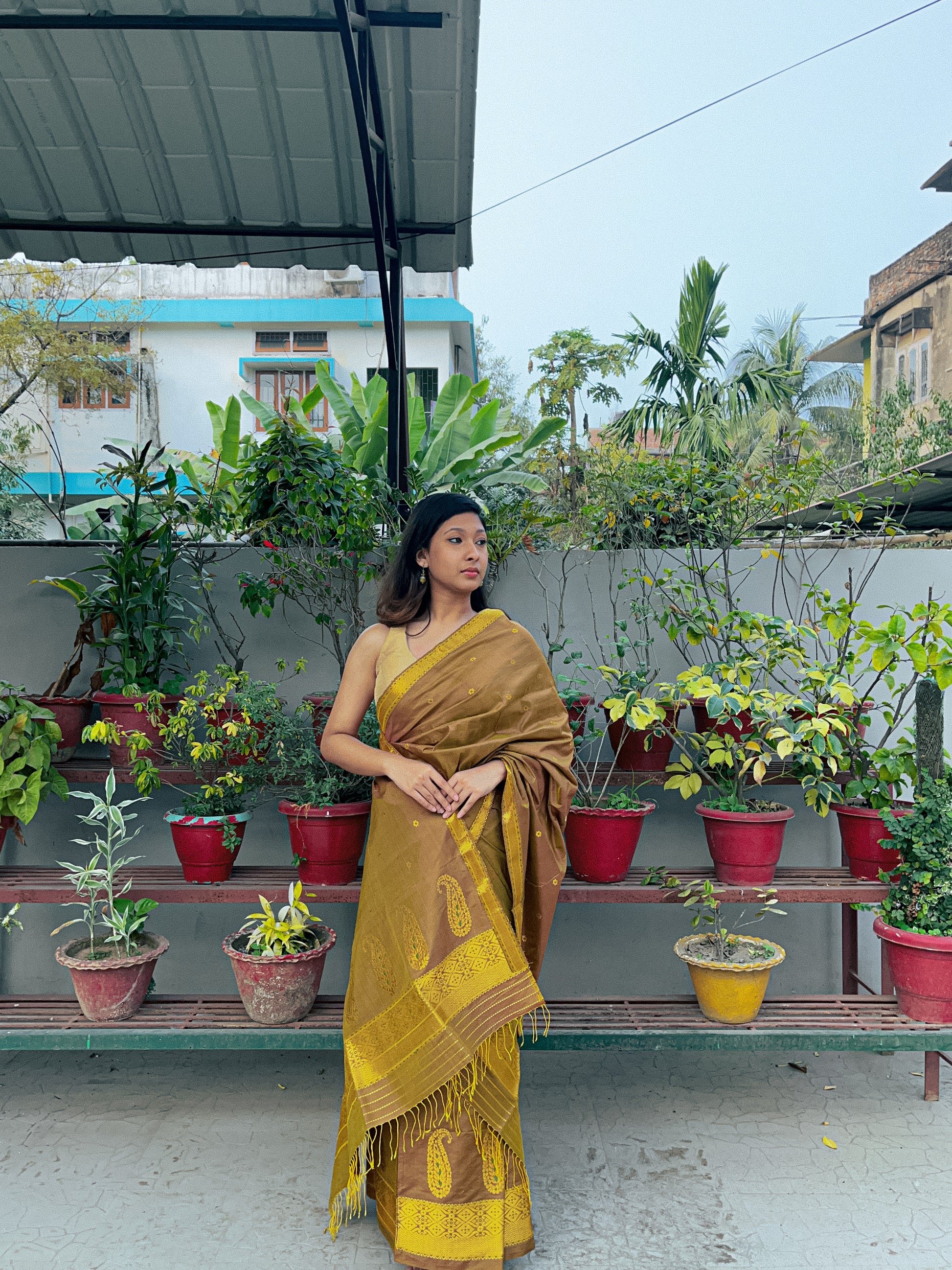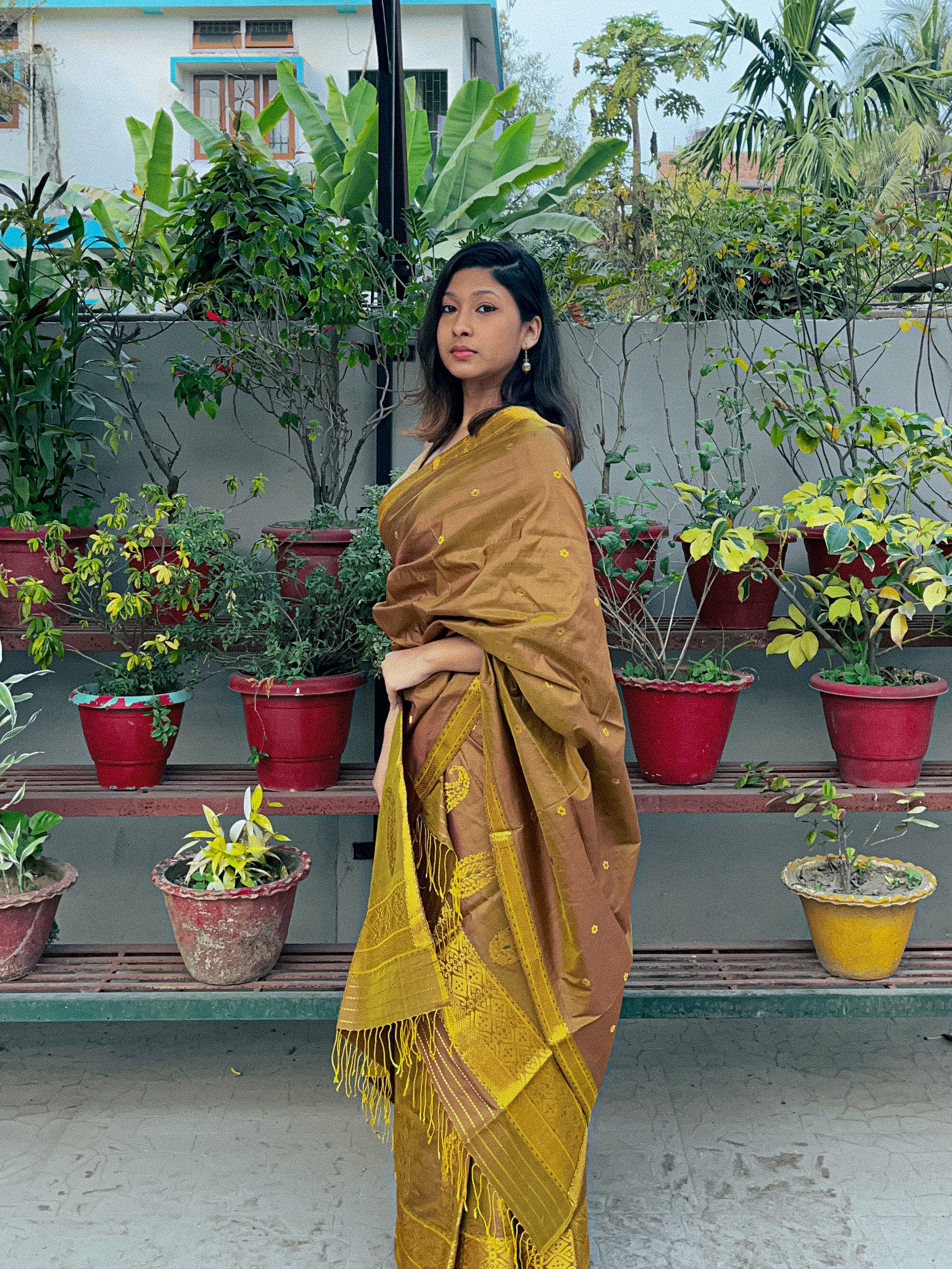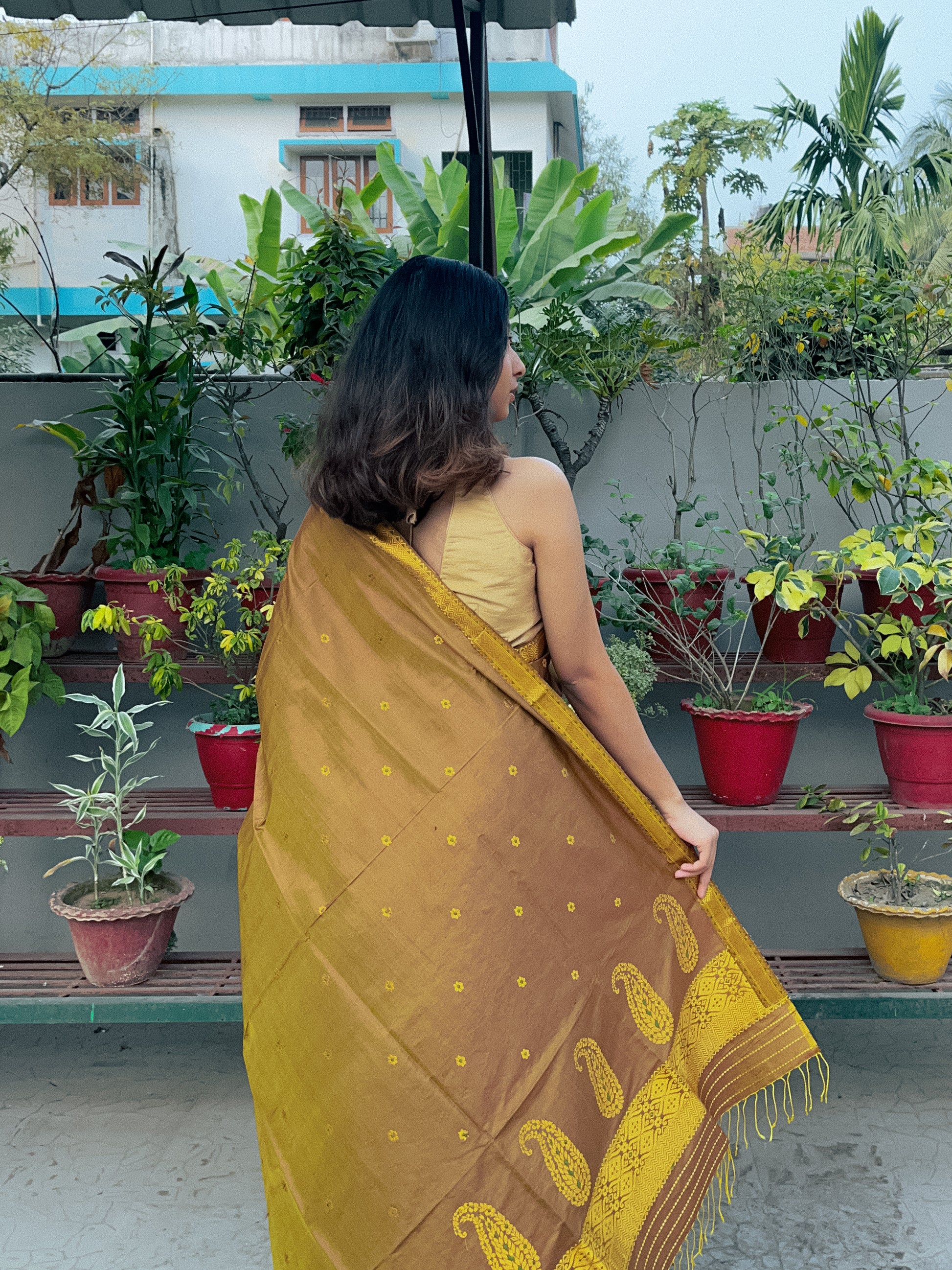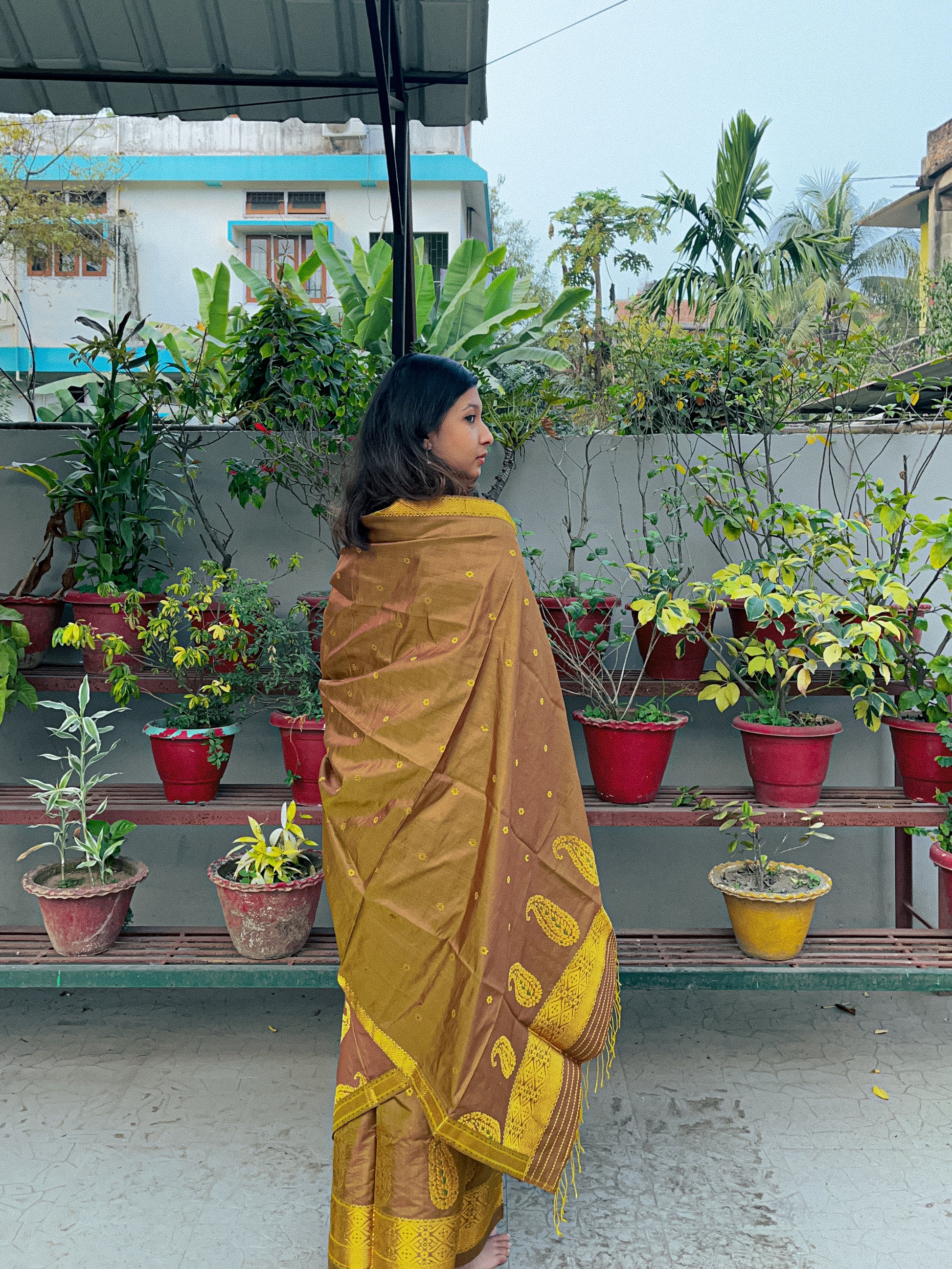 | Don’t store the mekhela sador in a plastic cover as this will cause the gold embroidery to turn black. |