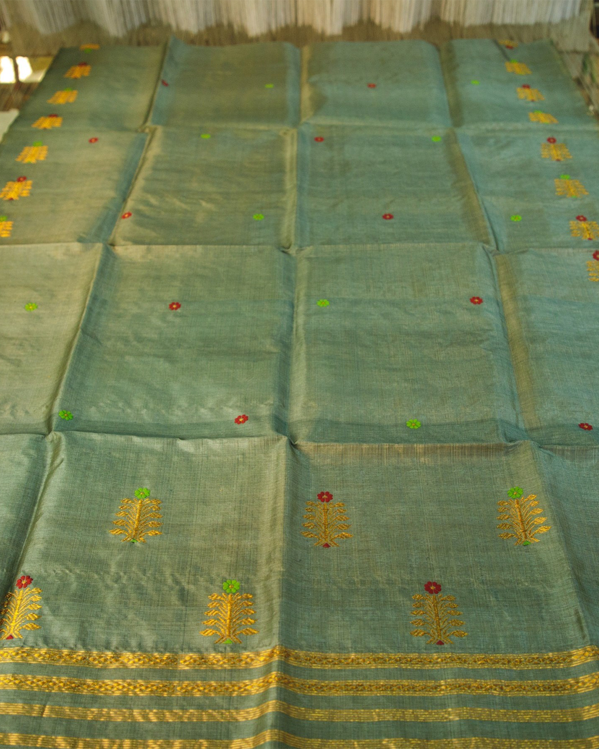 Rajgharana Ocean Green-Gold Tussar Silk Sador