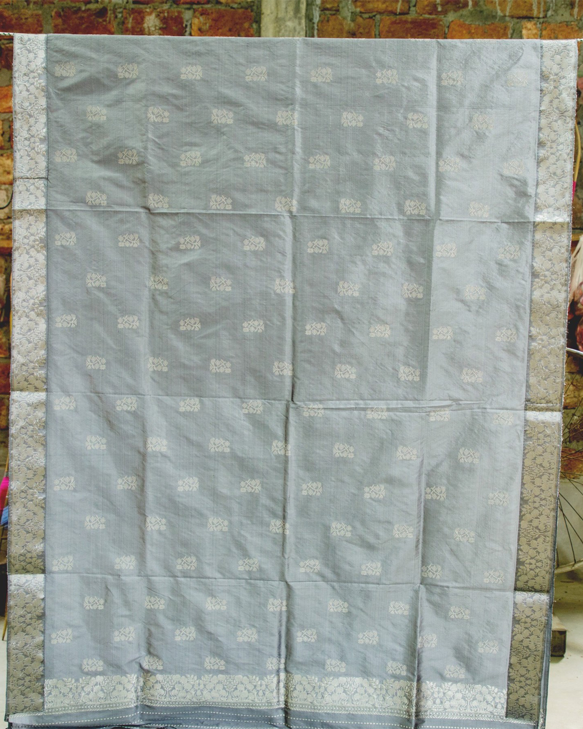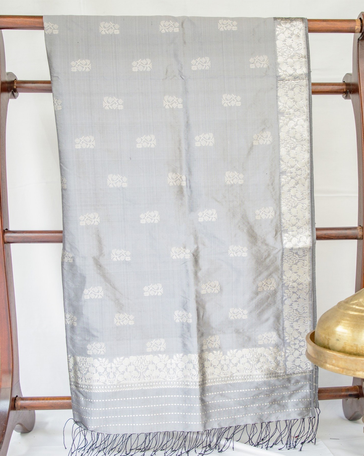 Sadhani Lava Grey-Silver Paat Silk Mekhela Sador