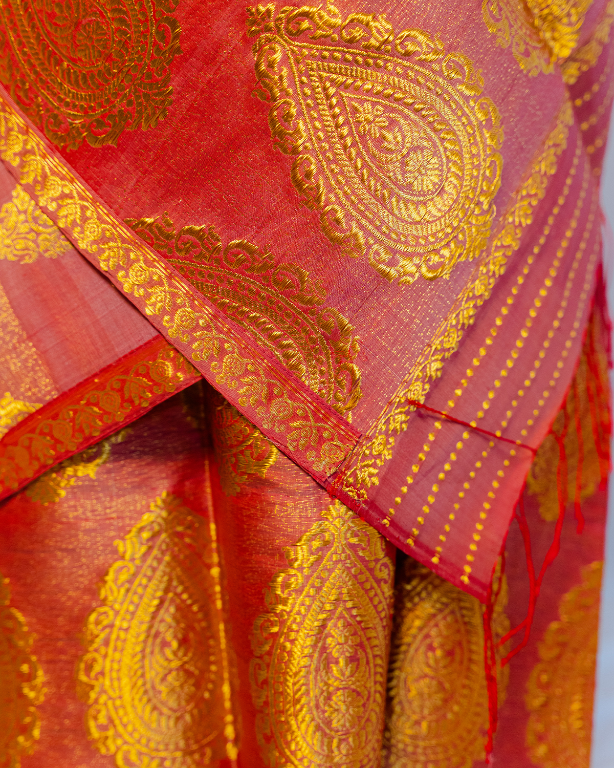 | Don’t store the mekhela sador in a plastic cover as this will cause the gold embroidery to turn black. |